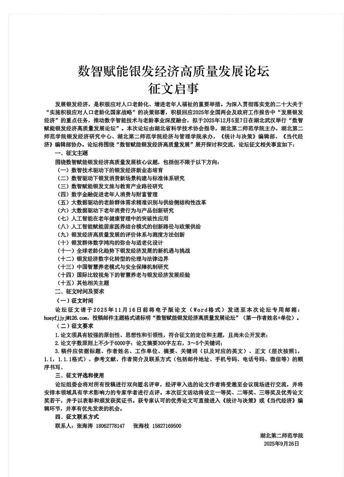 征文:数智赋能银发经济高质量发展论坛征文启事